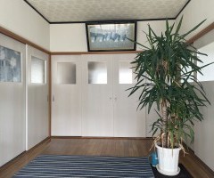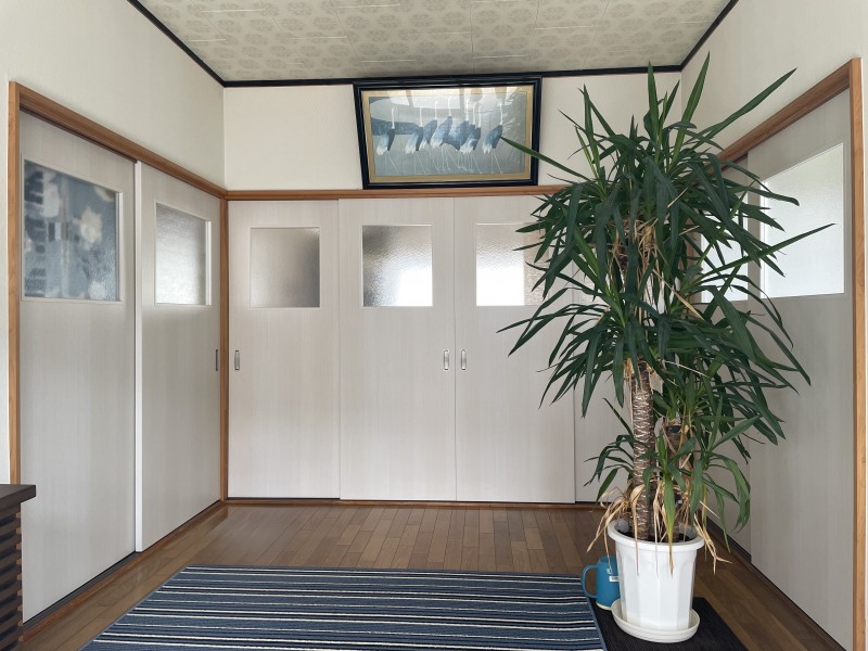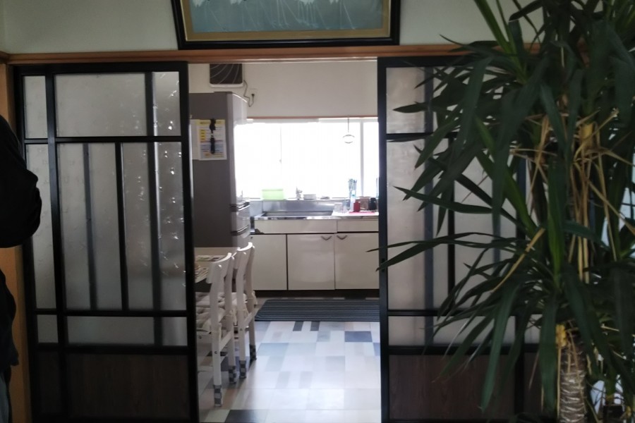 玄関から見える古いガラス建具を木製建具にしたい