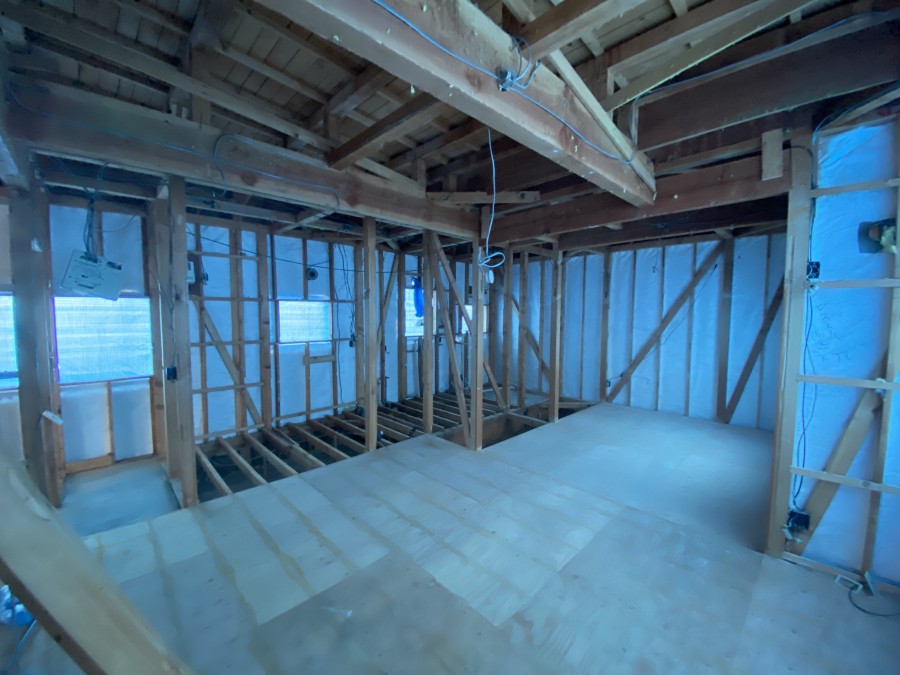 玄関部分の壁が撤去され、断熱材が出てきました!