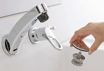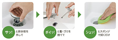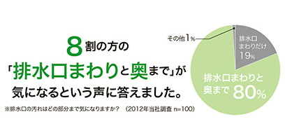 今まで気になった排水口の奥に、汚れがたまりにくい洗面化粧台なんです!