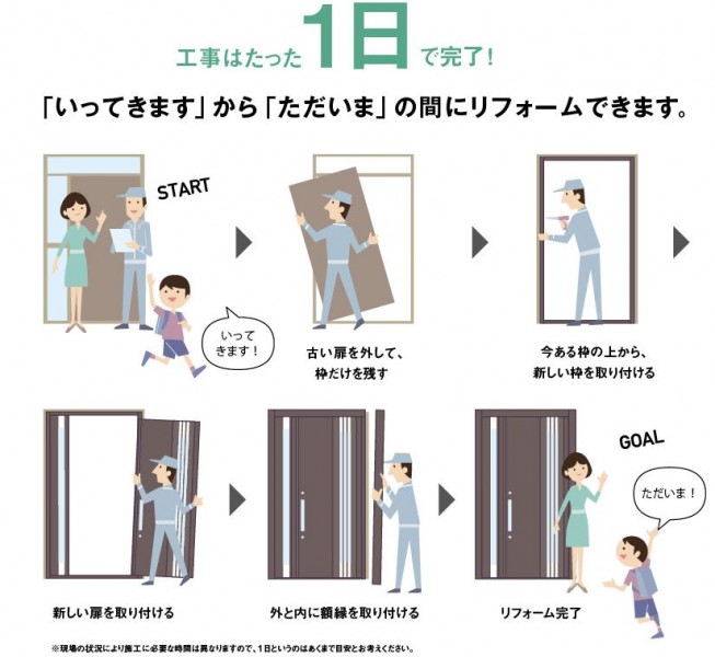 LIXILの玄関ドア「リシェント」なら、1日で簡単に玄関ドアのリフォームができます。