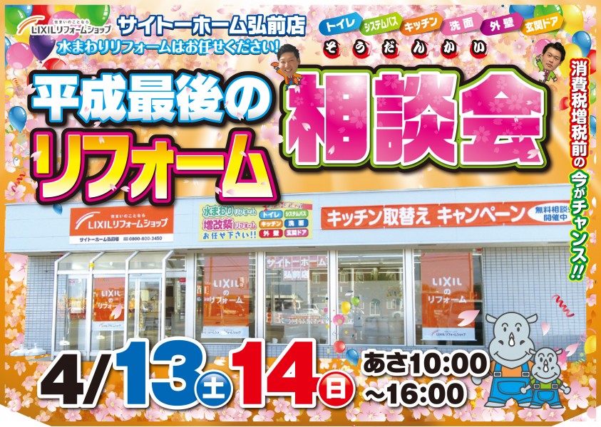 平成最後のLIXILリフォームショップサイトーホーム弘前店の2日間限定のリフォーム相談会開催です!!