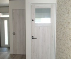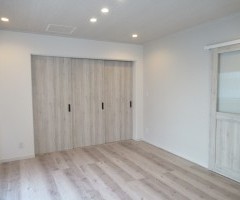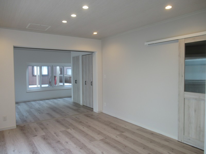 キッチン奥のデッドスペースを大容量のパントリーにし、キッチン/ダイニング・リビングからの続き間として和室を洋室にし、全体を統一感のある広々と使える空間としました。