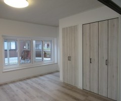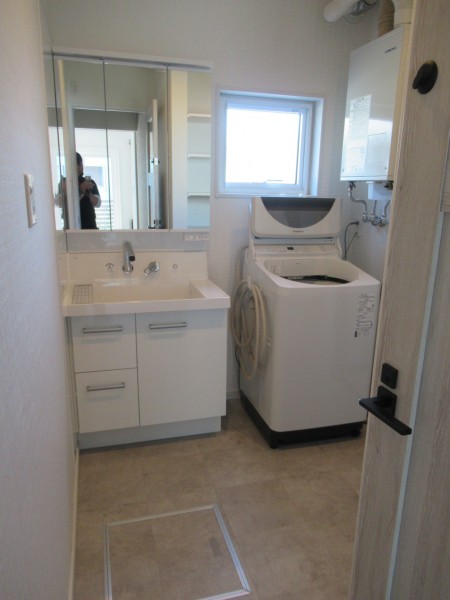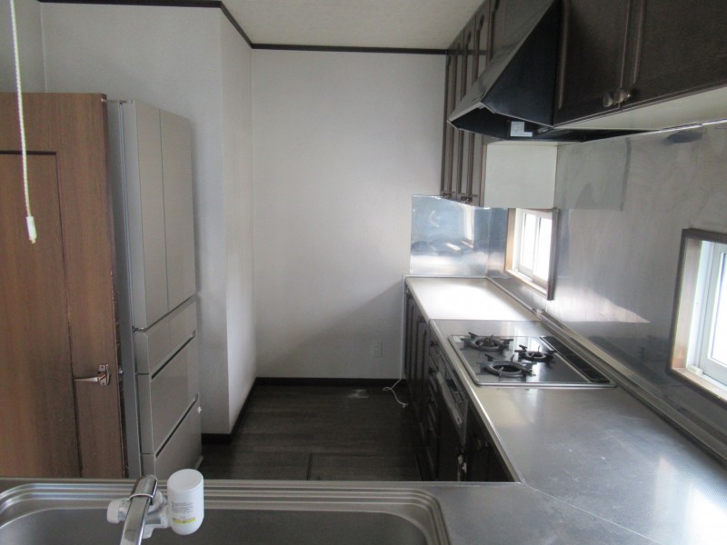 洗面の間取り・配置を変えることと、小さいサッシを塞ぐことで、キッチン位置を変更。