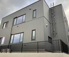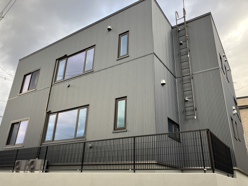 同じ色の外壁材でも角度によっては黒、グレー、シルバーと様々な表情を変えます。