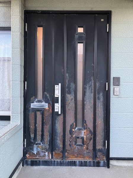 ■お客様からのご相談 海が近いのでサビてきてるにので取替したい ■リフォームポイント 一日で取替できるリフォーム用の玄関ドアの提案をしました