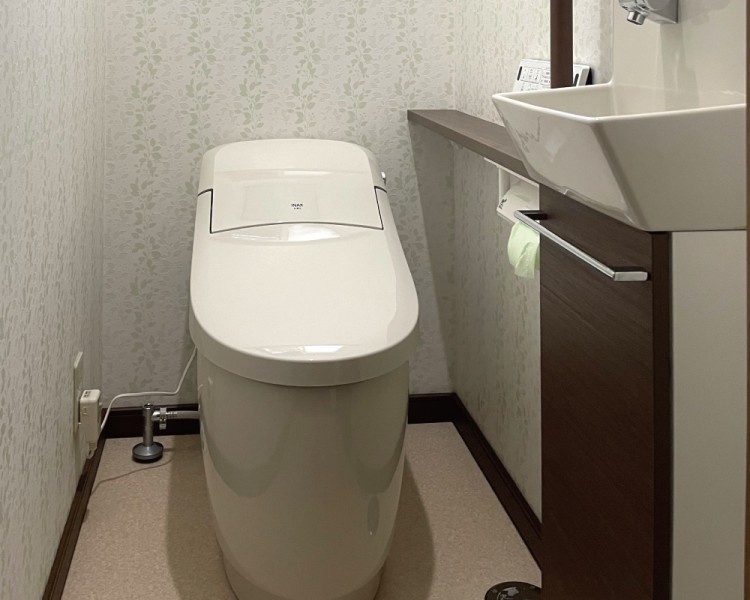 コンパクトで掃除がしやすいプレアスLSを使ったリフォームです。 落ち着いた雰囲気のトイレ空間に仕上がりました。