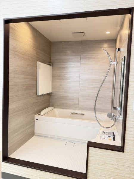 ショールームの新しいお風呂展示「スパージュ」をご紹介しています✨ 排水口掃除がラクになる機能や、温かさが続く浴槽など最新設備を解説!